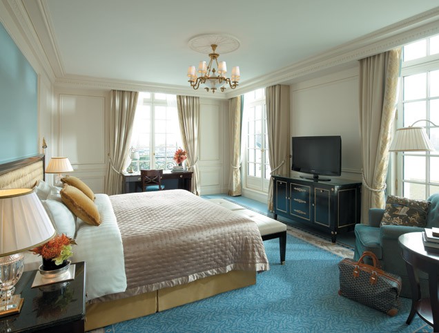 - Premier suite (94 кв. м): терраса с обеденной зоной на открытом воздухе, гостиная с обеденной зоной, спальня, ванная комната с ванной и душевой кабиной с функцией «тропический дождь». Расположен на 7 этаже. Возможно объединение с номером категории Deluxe room. Вид на Сену, мост Александра III, площадь Трокадеро и город;