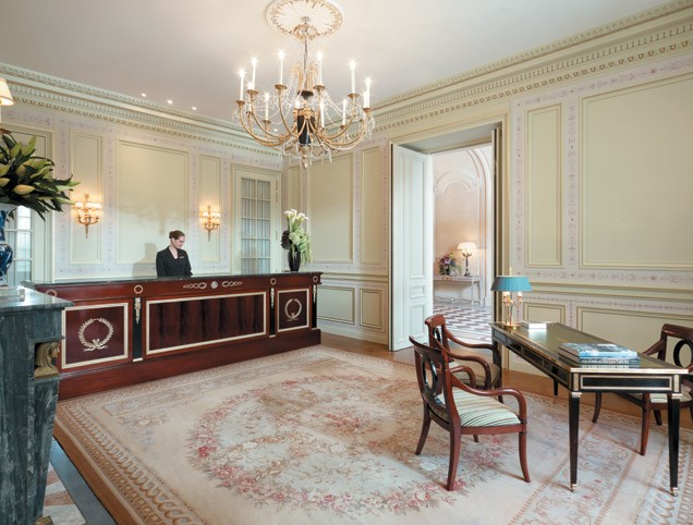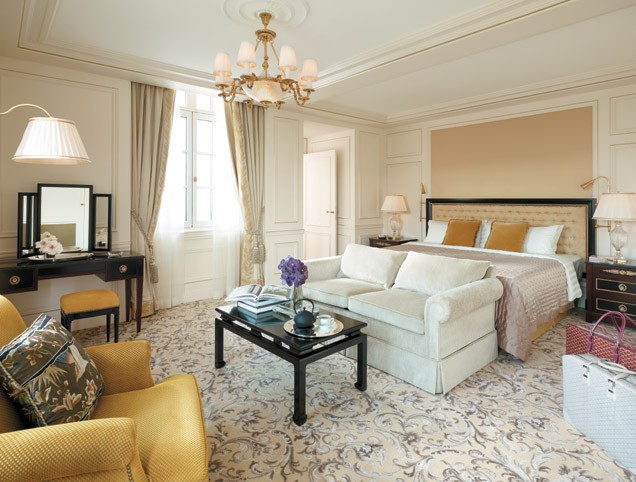 - La suite Imperiale (245-275 кв. м): 3 балкона, гостиная с обеденной зоной (стол на 8 персон), кухня, кабинет, спальня, гардеробная, кладовая, ванная комната с джакузи, гостевой туалет. Расположен на 2 этаже. Возможно присоединение 2 дополнительных спален (общая площадь номера – 350 кв. м). Представляет собой бывшие апартаменты принца Ролана Бонапарта и является историческим памятником Франции. Вид на улицу Avenue d´Iena и музей Guimet Museum;