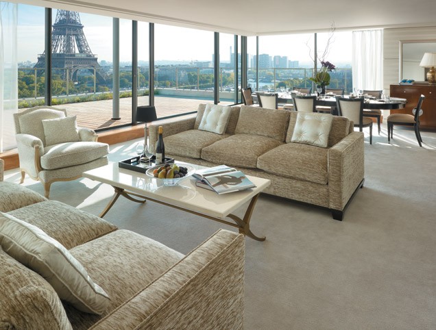 - Eiffel premier suite (64-80 кв. м): гостиная, спальня, ванная комната с ванной и душевой кабиной с функцией «тропический дождь». Возможно присоединение дополнительной спальни. Вид на сад, Эйфелеву башню, Сену и город;