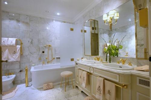 Elton John prestige suite 1-bedroom(105 кв. м): гостиная, спальня с кроватью king-size, 2 ванные комнаты (одна – с сауной, ванной и душевой кабиной, вторая – с ванной). Дополнительно: стереосистема, кофемашина Nespresso. Расположен на 3 этаже. Вид на Вандомскую площадь. Возможно присоединение дополнительной спальни с ванной комнатой.