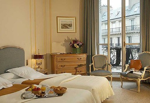 Suite(45 кв. м): гостиная, спальня, ванная комната. Вид на улицу Francois 1st или Pierre Charron.