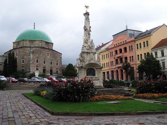 К другим известным достопримечательностям города можно отнести величественный Кафедральный собор святого Петра, с коваными воротами, позеленевшими от времени, рассматривать которые можно бесконечно. В этом соборе играл на органе немец Ференц Лист, бывший настолько венгром в душе, что жители Печа поставили ему памятник. Великий композитор стоит на балконе Епископского дворца (тоже стоит внимания туристов!), глядя на собор, где играл когда-то. Настоящим символом города стала мечеть Гази Касима, которую часто называют Церковь-Мечеть. Это религиозное сооружение за свою историю переходило из рук христиан к мусульманам и обратно, и в итоге сейчас над куполом красуются и исламский полумесяц, и католический крест.