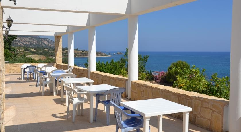 Завтрак подается в светлой столовой.Пляж и крытый рестораны подают блюда кипрской кухни и свежей рыбы на обед и ужин. Напитки и кофе подают в баре с видом на залив. Владельцы производить свои собственные фрукты, такие как инжир и авокадо, которыми гости могут насладиться.