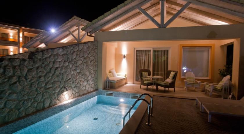 Просторные и светлые номера выходят на балкон или патио с видом на море и горы. Каждое современное помещение оснащено зоной отдыха с роскошным креслом. К услугам гостей кондиционер, 32-дюймовый ЖК-телевизор со спутниковыми каналами, а также тапочки. Каждая вилла обеспечена частным бассейном и камином.