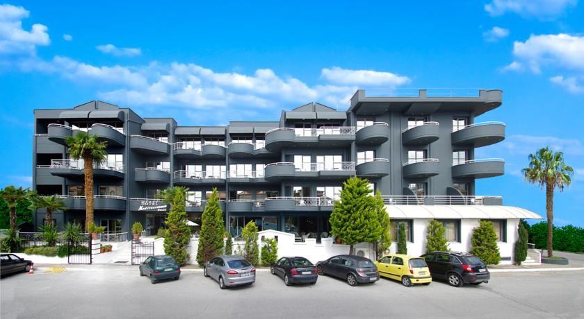 Современный4-звездочный курортный отельMediterraneanрасположенв нескольких шагах отдлинногопесчаного пляжа вгостеприимномприморскомпоселкеПаралияКатерини.