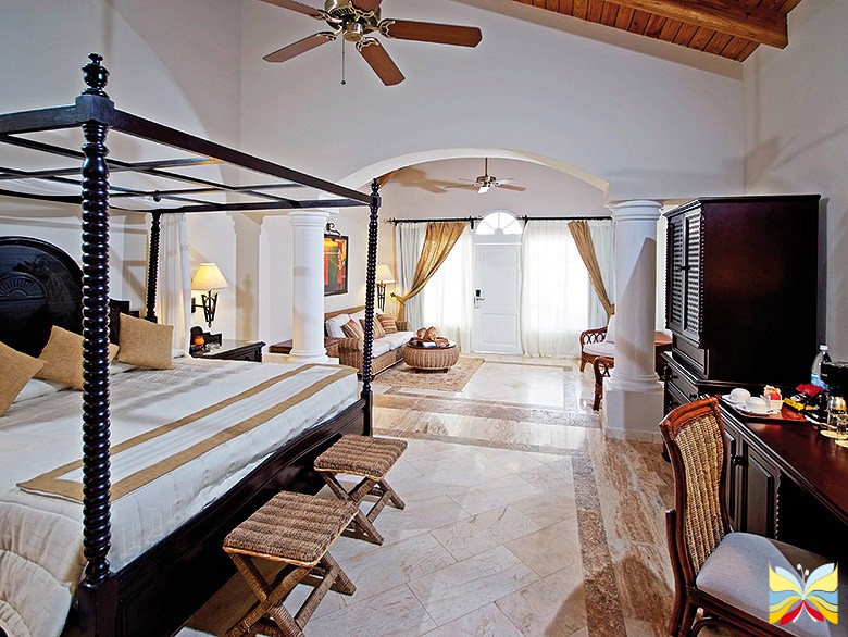 - 81 Junior Suite, расположены в центральном здании виллах типа В. Все номера имеют две раздельные кровати или 1 кровать King Size балдахином. Во всех номерах: кондиционер, вентилятор, мраморная ванная комната, гидромассажная ванна, фен, увеличительное зеркало, зеркало в полный рост, окно из ванной в комнату, халаты и тапочки, кофеварка (по запросу), будильник, мини бар, телефон, выход в Internet, столик для завтрака с двумя стульями, телевизор, сейф, балкон либо терраса.