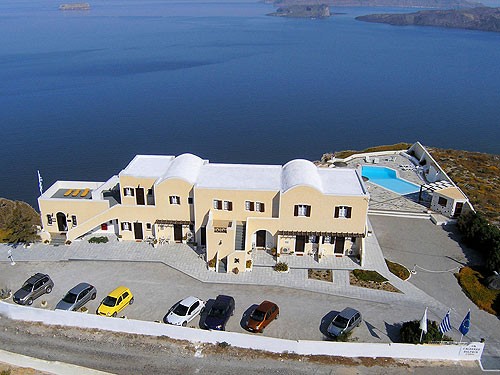 Расстояние до красного пляжа и пляжа Периволоса составляет 3 км. До оживленного города Фира — 8 км. Порт Атиниос расположен в 4 км от отеля, а международный аэропорт Санторини – в 7 км.