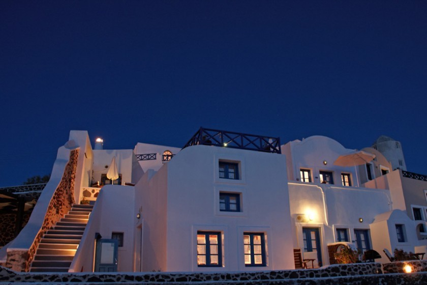 Отель находится в 350 метрах над уровнем моря, в тихой деревне Имеровигли, в 1,5 км от г.Фира, столицы острова, и в 12 км от аэропорта.