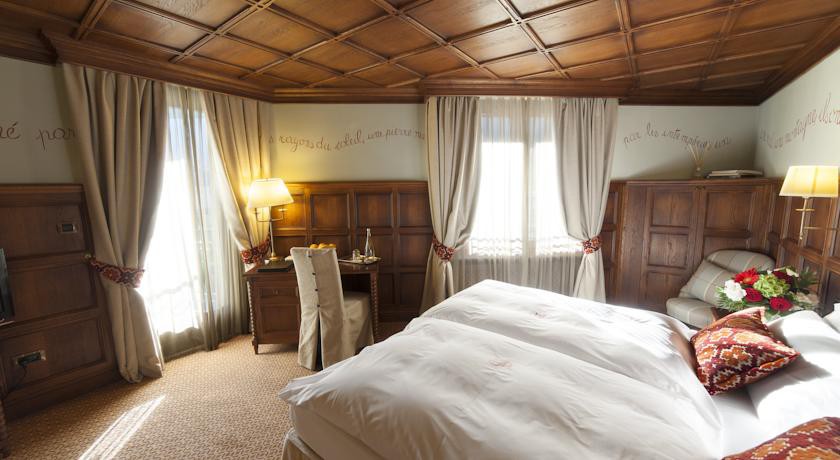- Suite Ancient Tower — роскошный сьют с традиционным савойским декором из натурального дерева, создающем атмосферу горного шале. Оттенок уникальности и эксклюзивности придает большая гидромассажная ванна;