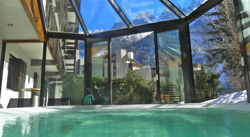 Отель находится недалеко от центра горнолыжного курорта Шамони, в конце пешеходной улицы, ведущей к главным магазинам и ресторанам города
