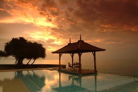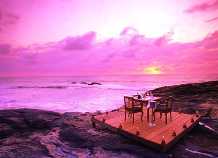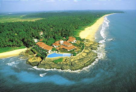 Отель расположен в 65 км к югу от Коломбо, на мысе выступающем в океан, и с трех сторон окружен водой