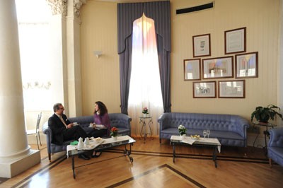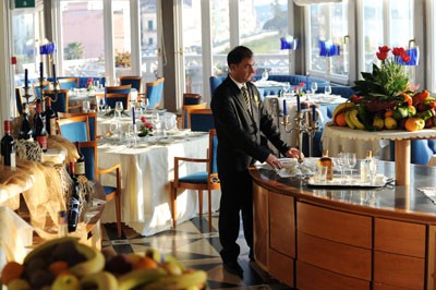 Работает бар, в котором предлагается большой выбор вин и легких закусок.