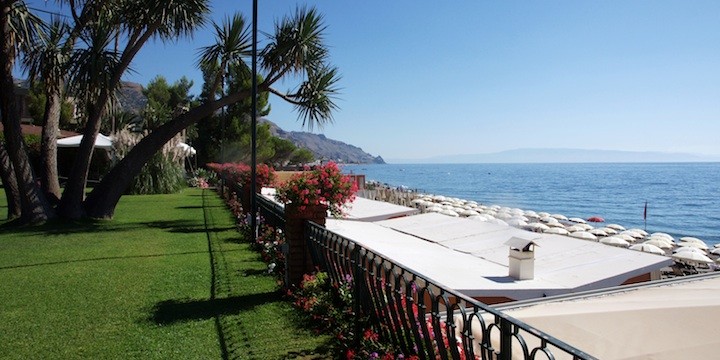 Это был старинный бастион, т.к. Таормина давно находится среди первых туристических остановок Сицилии.Он был закрыт в течение 40 лет, и теперь его снова открыли. Интерьер изменился до неузнаваемости. Все сделано в последних тенденциях итальянского стиля – не совсем современный, судя по изобилующим и хорошо подобранным антикварным вещам, но все особенности стиля четко прослеживаются, цветовая палитра выдержана, а мебель фабрики Poltrona Frau далеко не старомодная.