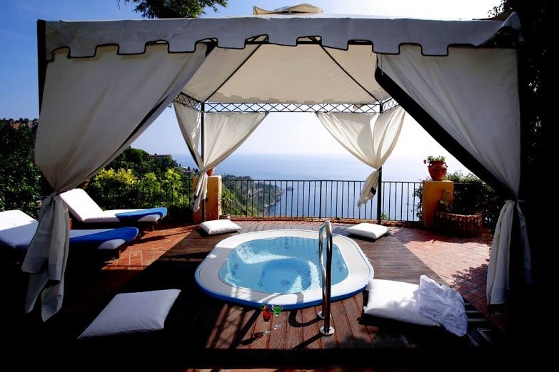 Garden Room with Jacuzzi Mini Pool — номер окружен пышным садом и расположен в корпусе Гранд Отель, содержит собственную террасу с гидромассажным мини-бассейном, окна выходят на бухту Таормина или греко-римский театр.