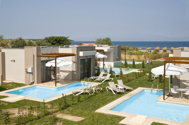 с частным бассейном: (на 2-5 человек): большая двуспальная кровать, ванная комната с ванной и / или душем, LCD спутниковое телевидение с DVD (все бесплатно), фен, международный прямой телефон, индивидуальный кондиционер / отопление, частный сейф, мини-холодильник, две ванные комнаты (джакузи, душ). Халаты, тапочки и другие дополнительные удобства. Терраса с шезлонгами.
