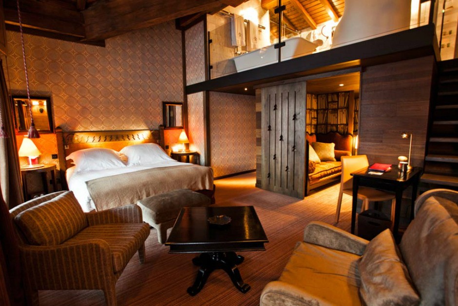 - Duplex mountain view - двухуровневый номер, спальня (двуспальная кровать), гостевая зона, ванная комната, балкон, камин, с видом на горы;