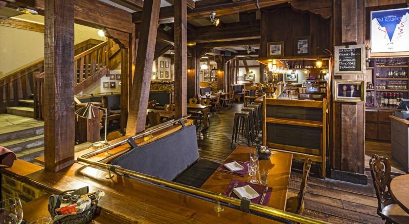 - стильный бар в холле отеля возле камина, предлагает большой выбор различных напитков и закусок;