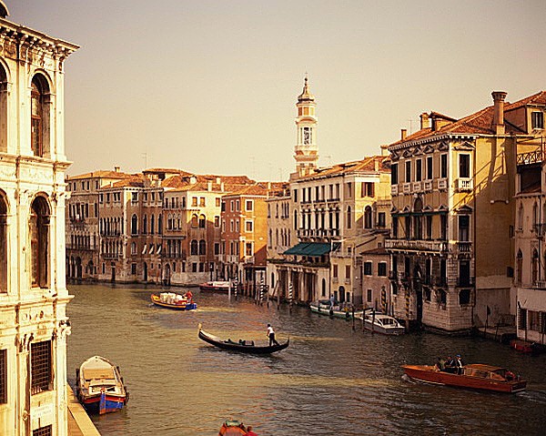 В Венеции находится самая красивая улица мира — Grand Canale, она же самый большой канал. На ней расположились роскошные особняки и дворцы венецианской знати (около 200). Большой канал (длина 3800 м, ширина варьируется от 30 до 70 м, глубина 4–5 м), изгибаясь в форме буквы S, делит город на две половины.