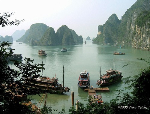 — изумительная бухта со своими более чем 3000 островами, выступающими из чистой изумрудной воды Тонкинского залива, является одним из природных чудес мира. Крошечные острова обрамлены бесчисленным множеством пляжей и гротов, созданных ветром, и волнами. Из-за того, что острова бухты Халонг являются скалистыми, в этом районе находятся тысячи пещер всех размеров и форм. Халонг — прекрасное место для дайвинга