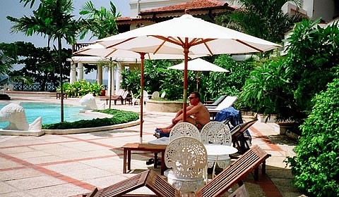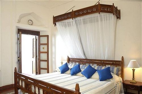 Все оформлены в светлых тонах, в местных традициях: потолки из мангрового дерева, арочные ниши, старинные медные лампы и резная мебель, керамика, лепнина, драпированные кровати и балконы с видом на бассейн и залив.